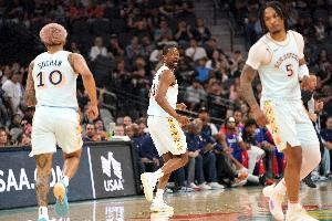 上半场比赛,马刺全队手感冰凉,进攻端频频受阻。其中,巴恩斯(7中1)、卡斯尔(7中0)、凯尔登(3中0)、保罗(3中0)、尚帕尼(3中0)五人合计23中1。全队45中10,其中三分25中6,送出7个失误,仅得34分。